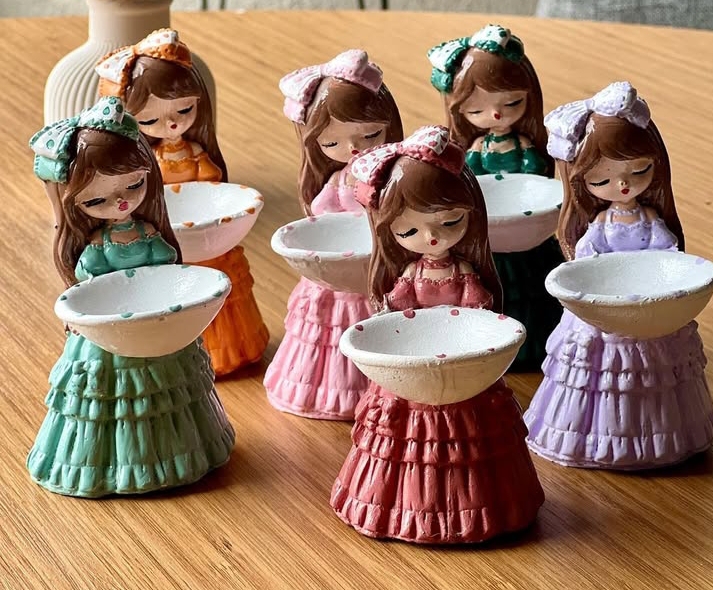 Beton döküm, istenilen renk desenlerde, kahvenizin yanında keyfinize keyif katacak sunum yapan dekoratif kızlar